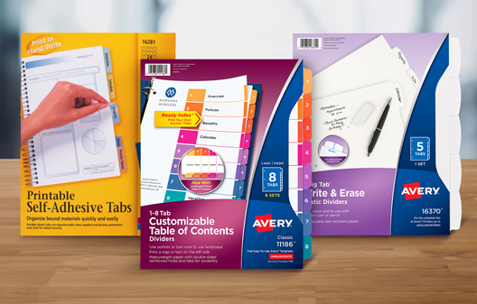 Use Avery® folder dividers and folder tabs to keep files organized and papers easy to find.