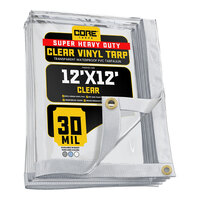 Core Tarps 12' x 12' Clear Extreme Heavy-Duty Weatherproof 30 Mil PVC Vinyl Tarp with Reinforced Edges CT-201-12X12