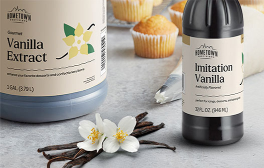 Find the perfect blend of flavors in your signature baked goods and confections by using Hometown Provisions extracts, pastes, and imitation flavorings.