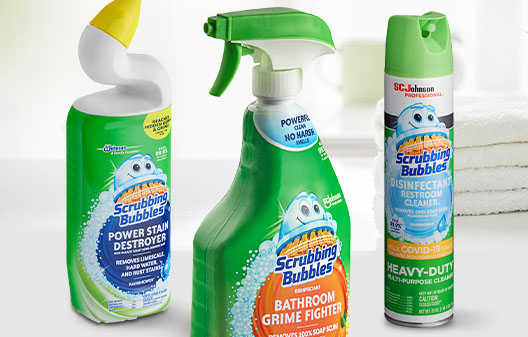 Scrubbing Bubbles® offer foaming cleaners, disinfectants, and liquid cleaners for a variety of surfaces. Many of their products are specially formulated to work with common restroom materials like tile, porcelain, chrome, and vinyl.