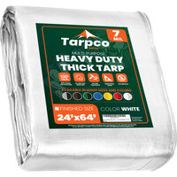 Tarpco Safety 24' x 64' White Heavy-Duty Weatherproof 7 Mil Poly Tarp with Reinforced Edges
