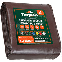 Tarpco Safety 12' x 20' Brown / Black Heavy-Duty Weatherproof 7 Mil Poly Tarp with Reinforced Edges