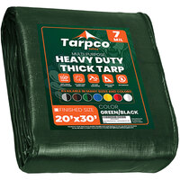 Tarpco Safety 10' x 12' Green / Black Extra Heavy-Duty Weatherproof 14 Mil Poly Tarp with Reinforced Edges