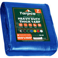 Tarpco Safety 100' x 100' Blue Heavy-Duty Weatherproof 7 Mil Poly Tarp with Reinforced Edges