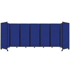 Create socially distanced, private work areas with this Versare 1182705 royal blue foldable room divider 360 - 19' 6" x 6' 10". This partition provides a simple yet ergonomic solution to dividing your open space. It is built to be both long-lasting and stylish, featuring a lightweight yet durable aluminum frame with cast aluminum corners for reinforcement. The frame accepts hooks (sold separately), allowing you to hang monitors, dry erase boards, or photos. It also boasts sound-dampening panels to help control the acoustic noise in any workspace and can be used to promote social distancing and safe, healthy practices in your establishment.
