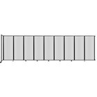 This room divider features a strong and durable aluminum frame. Its non-marking, locking casters make it easy to position in your area. Plus, their low center of gravity reduces noise and increases safety. The panels' clear poly polycarbonate material is easy to clean for a pristine appearance. This divider features 9 360-degree rotating panels as well as 1 full-sized end panel fixed at 90 degrees for a total of 10 panels to promote stability. Additionally, this divider features a versatile 25' x 6' 10" size so that you can accommodate many different setups. Its wall mountable design also allows you to conveniently and easily anchor the end of the divider with the included parts so that it stays in place. With this room divider, you will have unlimited configuration options!