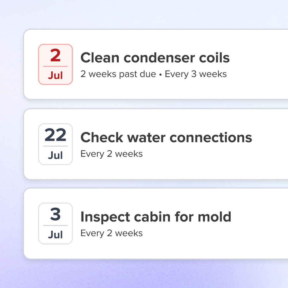Stay proactive, prevent downtime, and extend your equipment lifespan with VersaHub. Additionally, VersaHub Premium automates the process of tracking maintenance tasks by providing email summaries of all past-due and upcoming tasks on a weekly, monthly, or quarterly basis.