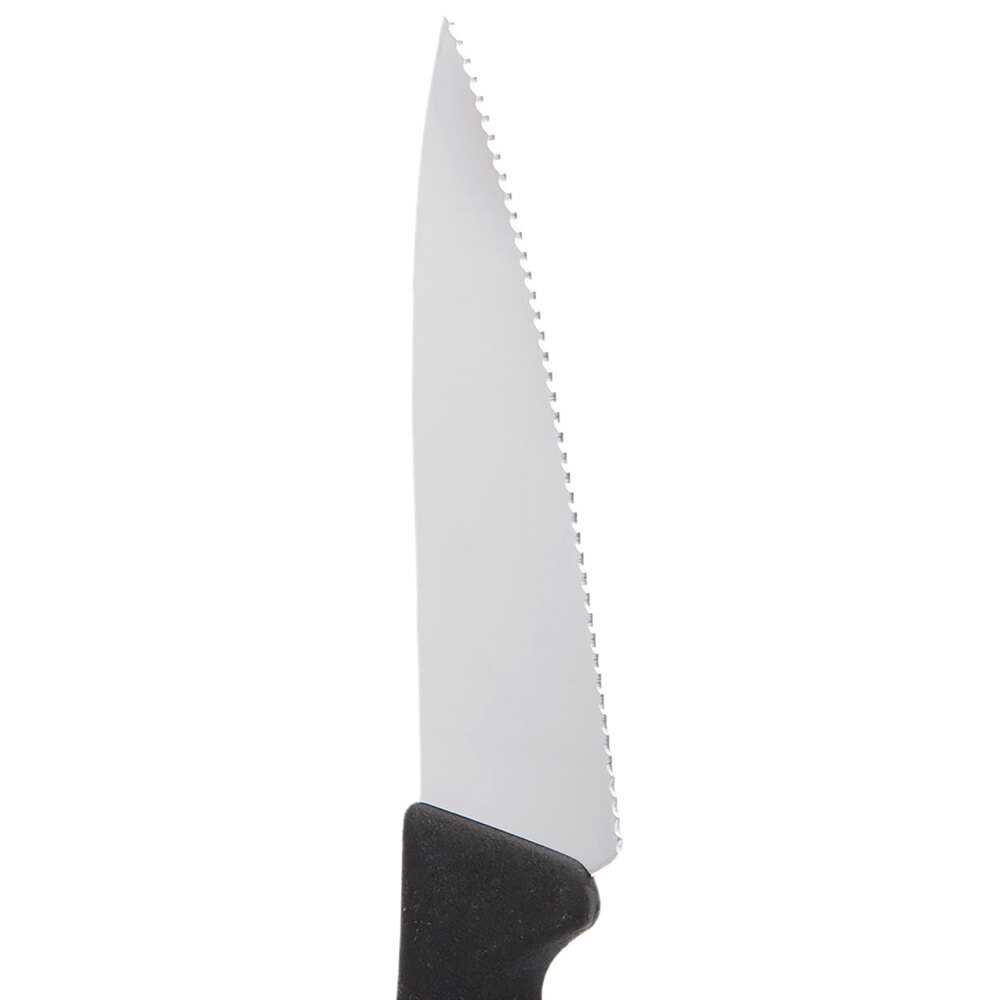 This knife has turned out to be an excellent and versatile tool for our kitchen. Regardless of if we’re using it for fruits, vegetables, or meats its serrated edge allows for the easy breaking of skin. We’ve even found it to be a resourceful tool for breaking through tough gristle contained within raw meats. This knife is also very useful for making clean cuts through fully built sandwiches without jeopardizing the integrity of the bread.