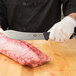 Crafted from high-carbon stainless steel, this knife's blade is built strong to provide you with the ability to create smooth, accurate cuts. The pointed tip is great for cutting through tough proteins, while its 7" long size allows you to cut large amounts of product at a time.