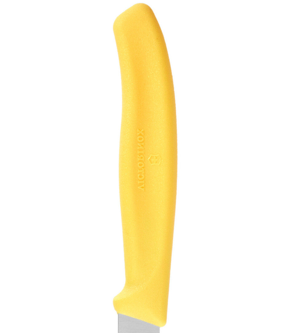 This knife features a lemon yellow handle, perfect for color-coding kitchen tasks and maintaining a sanitary work environment. It also features an ergonomic, slip-resistant grip for a comfortable hold.