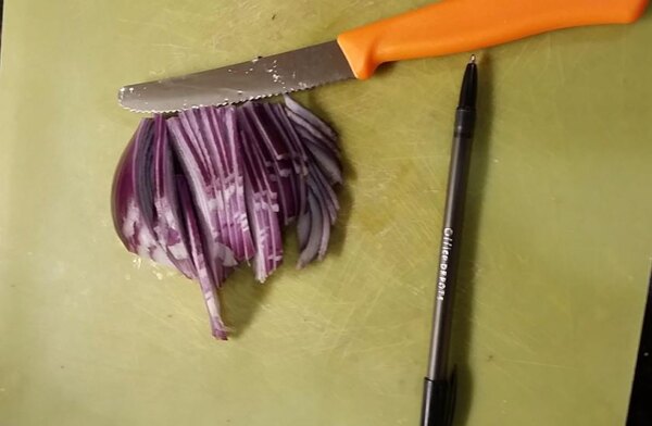This is my go to small knife. It's a favorite. I've ordered it before in black but will be happy to have it in a color that makes it easy to spot. This is a great tomato slicing knife.