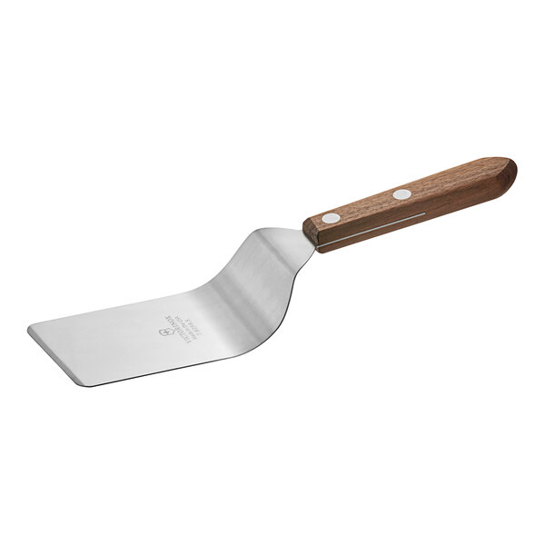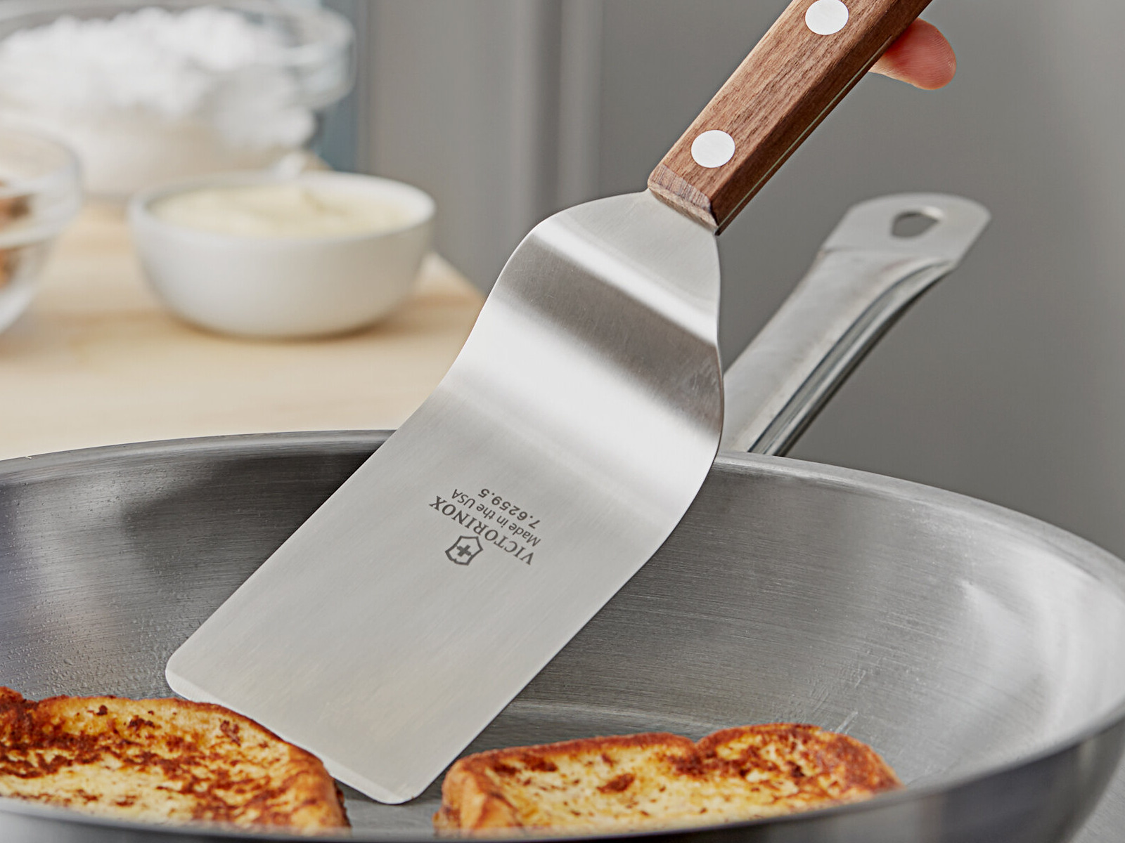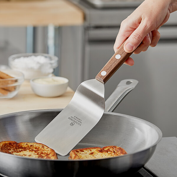Looking for the ultimate turner for your grill or restaurant? Look no further than this Victorinox 4" x 2 1/2" solid turner! Made with exceptional durability in mind, this turner is designed to stand up under constant use in your commercial kitchen without bending, breaking, or warping. The blade boasts an edge ideal for sliding under delicate or hearty foods, and is connected to a solid walnut handle for effortless turning. Bring this Victorinox turner to your kitchen to experience the efficiency and quality it provides.