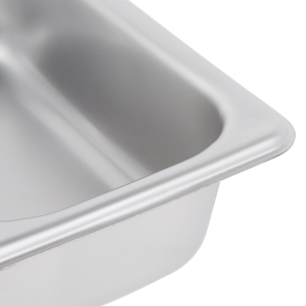 Perfect for any high-volume restaurant, cafeteria, dining hall, or catering business, this pan is built to last through heavy commercial use. Use this pan to save money in your commercial establishment as it holds and transports food from your kitchen to off-site locations, or use it to present food in your restaurant’s front-of-house serving area. The dent and ding resistant construction of this Vigor steam table pan makes it a powerful and performance-driven addition. From hotels to buffets, this 1/9 size pan is large enough to hold 0.6 qt of your signature entrees, casseroles, and salads.