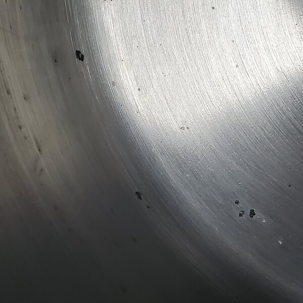 Smudges on the exterior very easily, the smudge marks start to smoke when using the pot for deep frying. The weld points for the handle started to either oxidize or turn into a dark color. Could be weakening the welds over time.