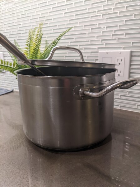 With its nonreactive stainless steel interior and smooth surface, this stock pot is easy to clean, won't discolor, and won't react to acidic foods, which could impact the flavor of your dishes.