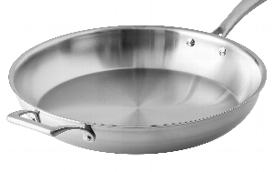 The versatile construction of this fry pan and the magnetic exterior means it can be used for induction as well as cooking on standard gas and electric cooktops. As a top-of-the-line fry pan, the gently-sloped sides are purposefully crafted for effortless turning, flipping, and sauteing, and the flared-rim design prevents drips and wasted product while pouring.
