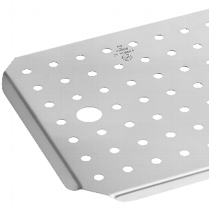 Designed to fit in 2/3 size steam table/hotel pans, this false bottom is made of sturdy stainless steel for added durability. A false bottom makes the food in the pan more visible and easier to reach, while the included drain holes ensure the liquids and sauces drain properly to prevent foods from being soggy or over-saturated.