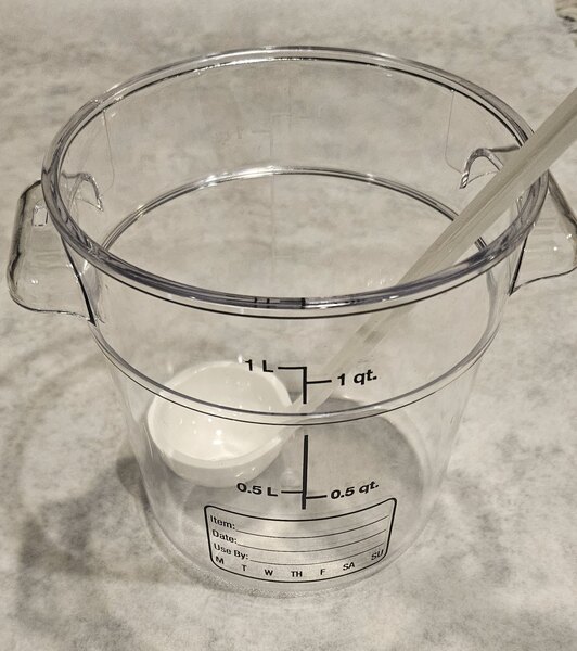 This container also features bold red-colored graduations in quarts and liters to make measuring easier when portioning out ingredients or prepared food. These easy-to-read graduations help your staff identify amounts at a glance to make it simple to take inventory or assess how much product you have remaining. The graduations correspond to compatible red Vigor lids (sold separately) to help create a color coding system in your busy kitchen!