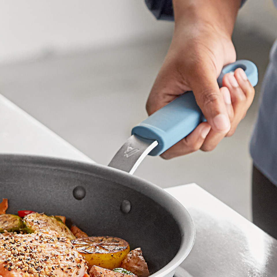 The ergonomic, plated handle design offers comfort and reduces heat transfer, ensuring a safe and secure grip during use. It has a hanging hole that allows for easy hanging storage in your busy kitchen. Additionally, it fits right into the pan's oven-safe silicone grip that can stand up to 450 degrees Fahrenheit of continuous use and up to 600 degrees Fahrenheit of sporadic use.