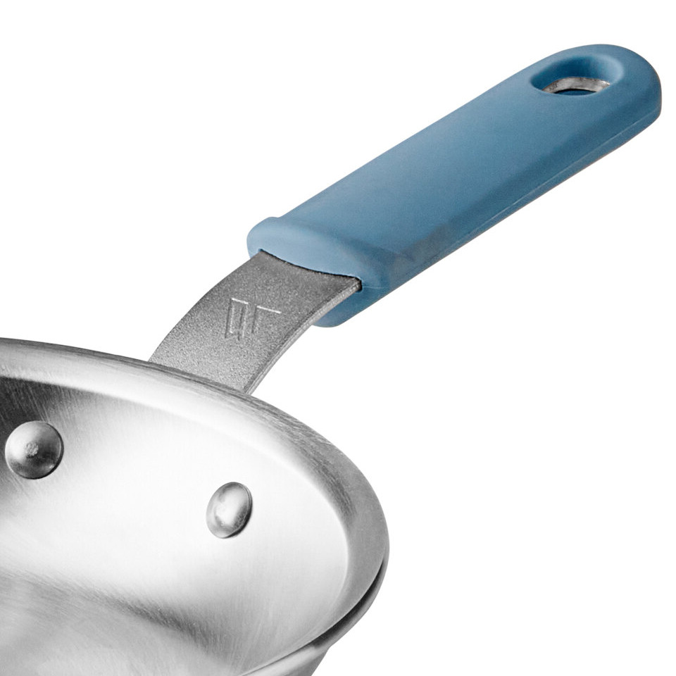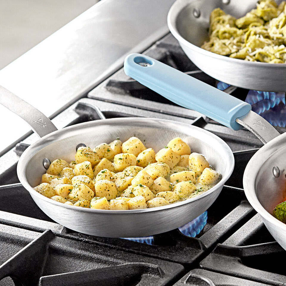 For a handle to be welded, the metal must first be melted and then adhered to the pan body. This creates a strong bond that leaves little to no space in between, so bacteria and other food crumbs can’t collect and cause sanitation issues. Both are long lasting solutions for fry and sauce pan handles because they are durable and can withstand heat.