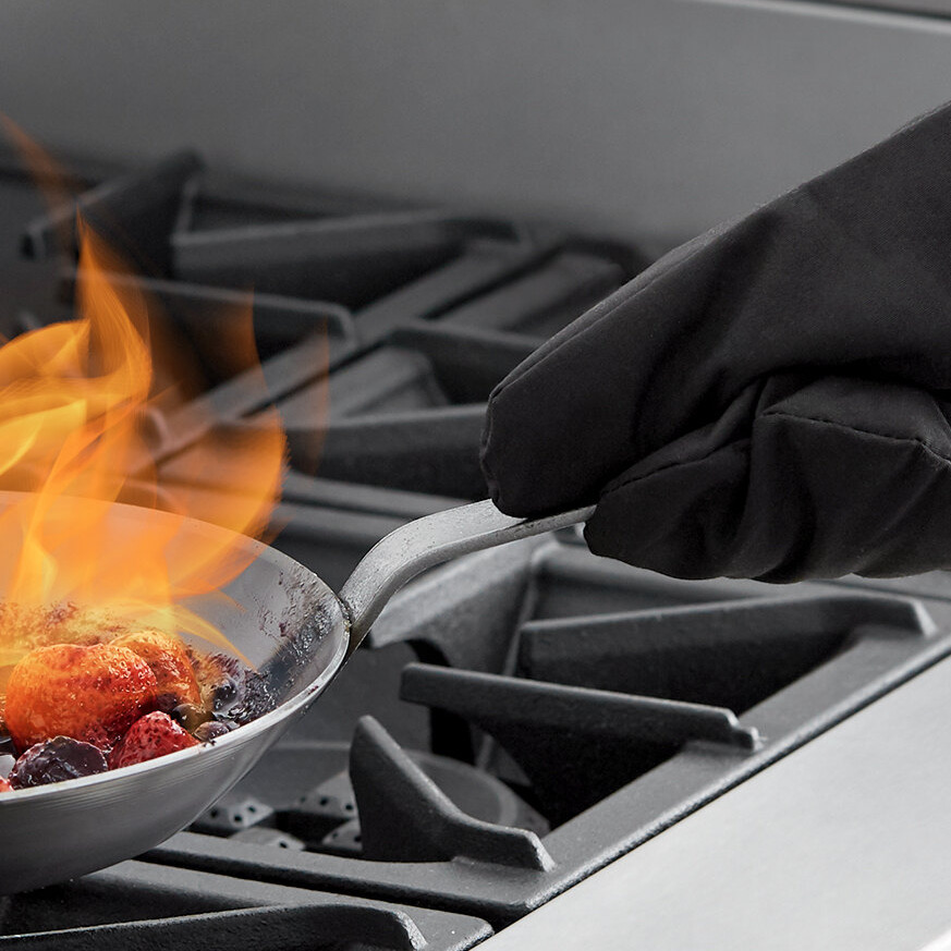 This mitt features a Kevlar® gusset and offers extra heat and flame protection and durability between the thumb and forefinger. The Nomex® exterior is incredibly easy to wipe clean, and helps to provide your hands with supreme protection and high performance, even during greasy applications.