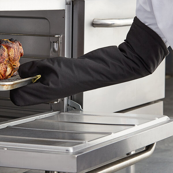 The 24" length covers most users' elbows, providing extra protection when reaching deep into hot ovens.