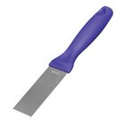 Keep your kitchen clean and your cooking area free of unwanted debris with this Vikan yellow scraper. Designed with a rigid stainless steel blade, this food-safe scraper is ideal for removing stubborn debris from smooth surfaces. The blade is beveled to easily loosen dried pastry dough, starches, chocolate, and burnt food. This compact scraper is perfect for cleaning in tight spaces, and the ergonomic handle is comfortable to hold for extended periods of time.