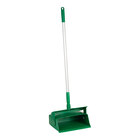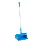 Simplify floor cleanup with this Vikan 11 5/8" black upright compact lobby dustpan with locking lid! Designed to reduce physical strain, this dustpan is built with a 33" handle to minimize the need to lean over while sweeping. It also features a compact design, making it light weight and easy to move around. The flexible slanted contact lip ensures easy and efficient sweeping into the dustpan. Plus, the included lid can lock into place when closed. Simply push the handle forward and gently press down to lock the lid. To unlock, press down again then pull the handle up, moving it all the way back to open the pan. Since you don't have to touch the pan directly at any point, this dustpan ensures optimal hygiene in your establishment.
