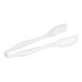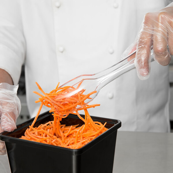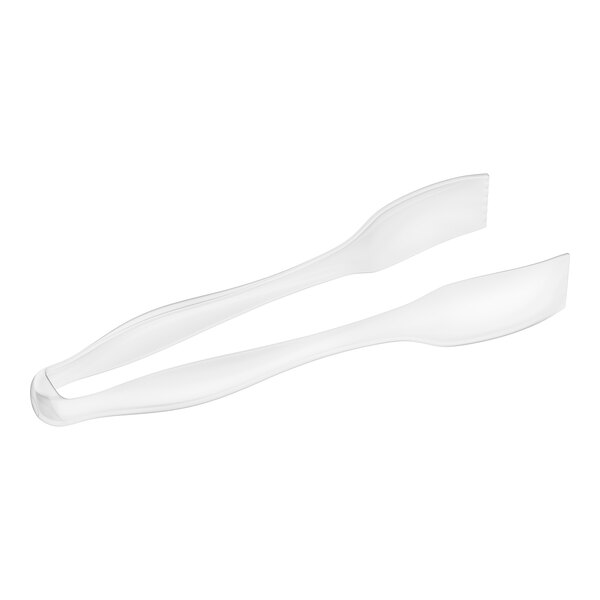 These Visions 10 1/2" clear disposable plastic tongs eliminate the hassle of washing, transporting, and replacing expensive silverware. Providing a simple yet attractive design, these tongs combine appearance and functionality into one great product. Pick up everything from pastries, bagels, and other desserts to fresh fruit, vegetables, and salads!