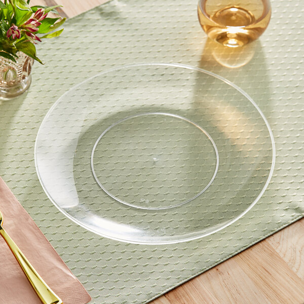 Featuring a contemporary aesthetic, this plate offers an elegant backdrop for your culinary creations that is sure to impress guests. The classic clear color adds a touch of luxury to any table setting, making it perfect for weddings, banquets, and upscale events.