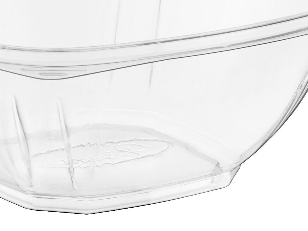 This bowl is made with sturdy PET construction. With a clear design, guests will be able to see the contents of the bowl from all angles.