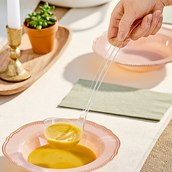 Whether used at catered events, restaurants, or banquets, this plastic ladle offers an efficient way to serve beverages without compromising on quality. Elevate your beverage service with this Visions 3 oz. clear disposable plastic ladle!