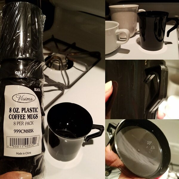 I really like the Visions 8 oz Clear Plastic Coffee Mugs. I like to see what I am drinking. Good construction. Two downsides: the cups are difficult to pry apart and 2 of the 8 cups came broken, however Webstaurant immediately reimbursed me for the two cups. Two thumbs up on the customer service!