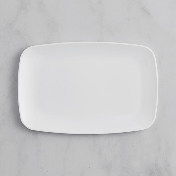 Visions 9 1/2" x 6 1/4" White Rectangular Plastic Coupe Platter with Silver Band - 120/Case