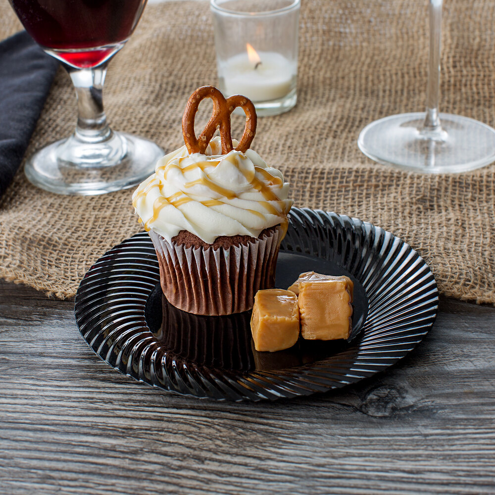 Add an elegant touch to your event with this Visions Wave 6" black plastic plate!