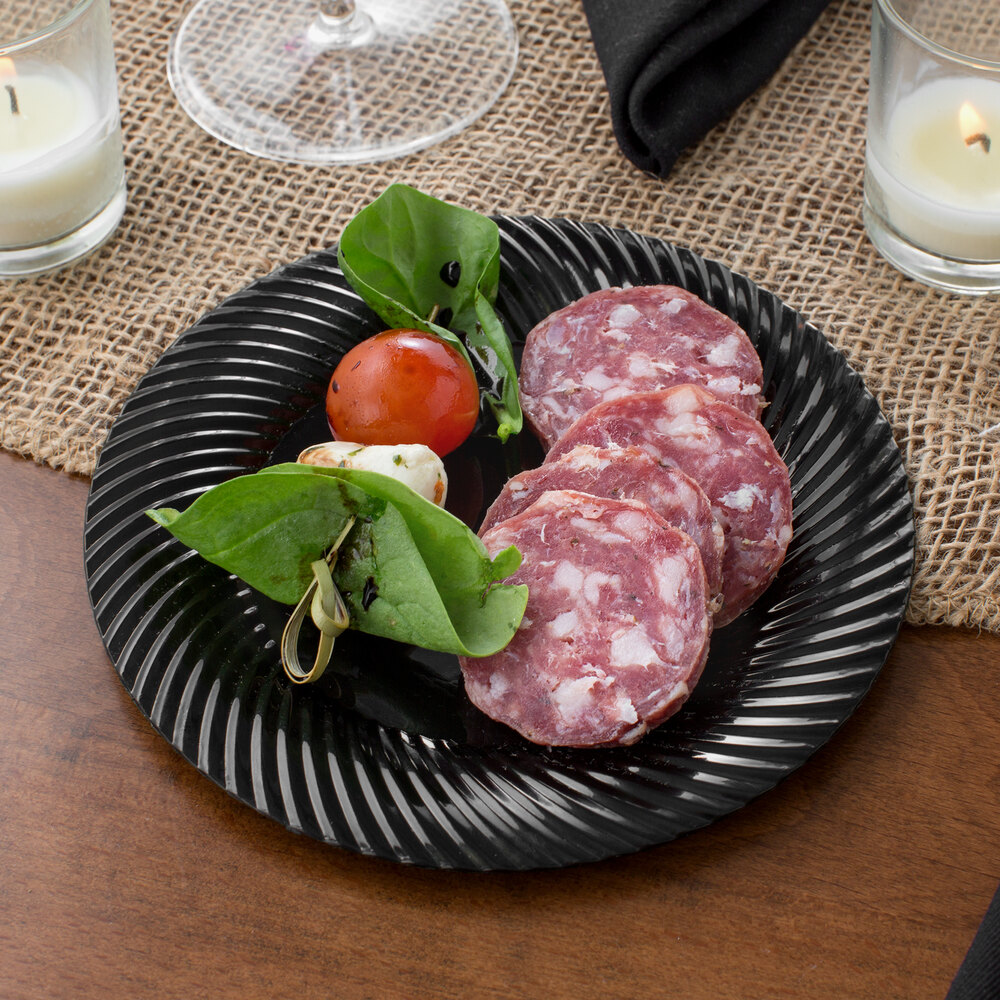Visions Wave 6" Black Plastic Plate - 180/Case