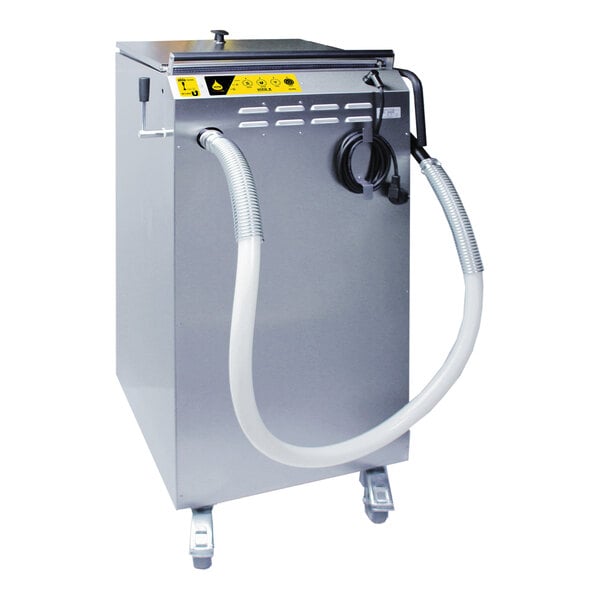 The VITO XL your oil in an easy and hygienic way. It vacuums the oil out of your fryer, cleans it from particles, and stores it inside its 220 lb. tank. Like every VITO oil filter system, the VITO XL provides a microfiltration of the oil up to 5 micron. As an additional feature, no chemicals are needed to clean the oil, which preserves the optimal taste of the fried dishes. The unique design makes sure the VITO can handle temperatures up to 392 degrees Fahrenheit / 200 degrees Celsius and provides highest safety at work by avoiding direct contact with the hot oil.