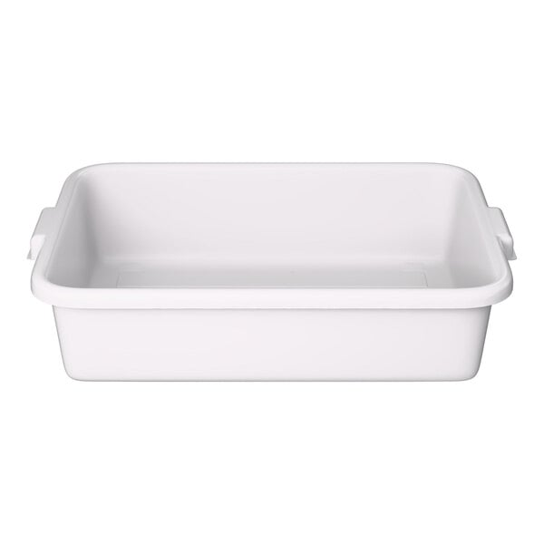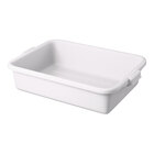 Ensure that your dinnerware and flatware pieces are properly organized and stored with the help of this Vollrath 1521-05 Traex® 20" x 15" x 5" white high density polyethylene bus tub. Featuring a dependable high density polyethylene construction, this bus tub is designed for everyday use in high-volume consumer traffic environments. It also boasts reinforced ribs on the top and bottom of the tub for extra strength and protection against chips or cracks. Plus, it offers a temperature range of -30 to 180 degrees Fahrenheit, making it a versatile addition to any back-of-house setting! Its convenient stacking lugs even promote quicker drying and eliminate the possibility of your bus tubs getting stuck together when stacked.