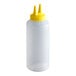 Provide your customers with their favorite condiments with this Vollrath 2212-1308 Traex® Color-Mate™ 12 oz. clear Twin Tip™ standard squeeze bottle with yellow cap. With this bottle, you'll be able to provide easy, mess-free service, every time! At the same time, the durable, yet flexible polyethylene bottle is easy to squeeze for fast application of ketchup, mustard, signature sauces, dressings, or any of your favorite condiments. Pair this bottle with other clear bottles with different colored caps in the line creating a color-coded system in your busy kitchen, while being able to easily identify which products are in your bottles at a glance. The clear color makes it great for dispensing oils and light colored condiments with a neutral color, while the Twin Tip™ design saves time in high-volume areas, and allows you to quickly disperse condiments and dressing on sandwiches and salads with consistency. Cut the tips to dispense more viscous sauces, or leave as is for thin liquids. The translucent bottle allows you to easily identify the contents and track fill levels at a glance, and you can pair it with other colored bottles from this line for quick identification.
