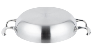 For the most elegant presentation, this 8" french omelet pan's interior and exterior stainless steel surfaces feature a beautiful satin finish.