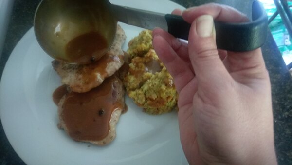 This ladle is short and sweet, perfect for all your creams and sauces. I am curious how well the rubbery handle will hold up to heat and time in our dry climate.