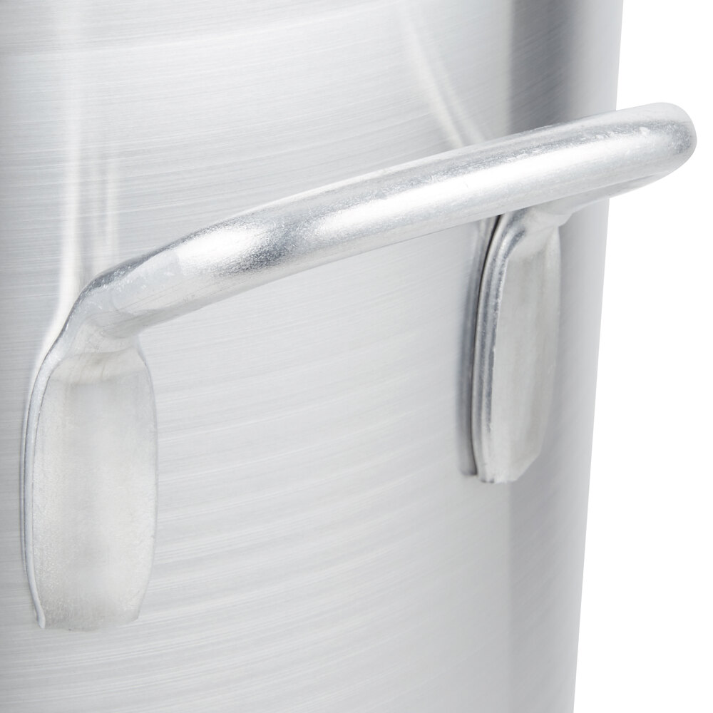 Constructed of standard 8-gauge energy-efficient and impact-resistant 3004 aluminum, this stock pot is designed for commercial kitchen use, ensuring a long life and superior performance.