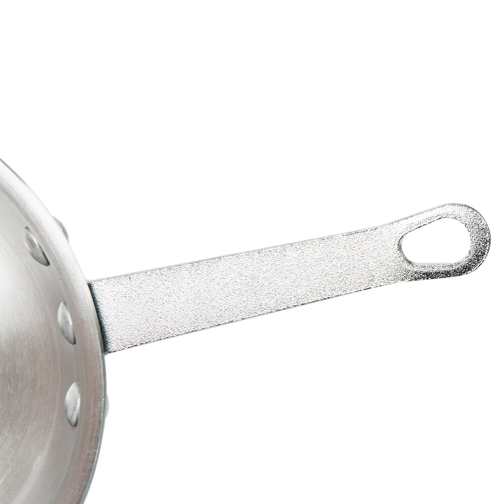 This item's handle even comes riveted to the body of the pan at three separate points, which provides a sturdy, durable connection that won't come loose or break off over time. Plus, a large hanging hole at the end of the nickel-plated steel handle makes it easy to store.