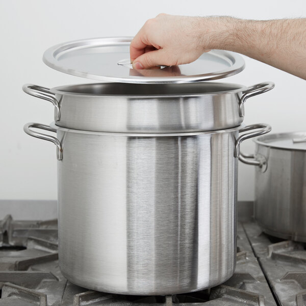 Each component is made of 18-8 stainless steel for long-lasting durability. Plus, the stainless steel material will not pit or discolor. An arc-sprayed aluminum bottom also helps distribute heat evenly to prevent hot spots that cause soups and sauces to burn.