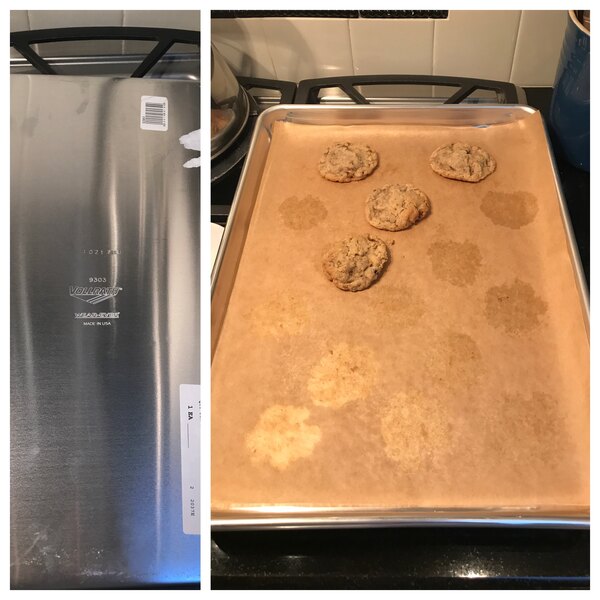 I ordered this Vollrath sheet pan six months ago. In those six months, it has gotten constant use. In the past, sheet pans have discolored and warped. This one is in the same condition as the day I bought it!