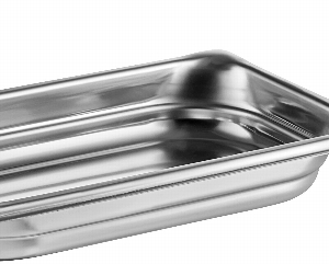 Purchased for a cold salad bar, very good quality. The bottom is rounded which does not allow it to stand strait on a table. Otherwise it is a strong pan that holds up well.