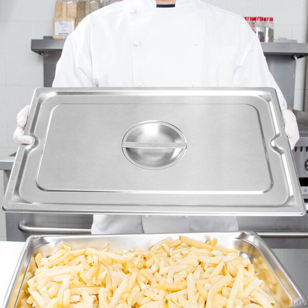 Since this steam table pan cover is made of durable stainless steel, it will stand up to rigorous use in your commercial environment.
