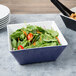 Add a contemporary touch to your dinnerware collection with this Vollrath V2220330 3.5 qt. blue / white large square melamine bowl. Its size is perfect for serving salads, snacks, or main dishes at buffet-style restaurants or events. Plus, its blue exterior contrasts nicely with a bright wide interior and complements the modern square shape to create a memorable dining experience for your patrons. The shape also draws focus towards your delicious food, allowing your customers to appreciate its attractive and simple presentation.