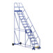 Vestil 14-Step Steel Rolling Warehouse Ladder with 23 9/16" Wide Perforated 50-Degree Angled Steps and 21" Deep Top Step LAD-14-21-P-EZ