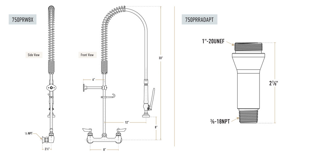 Waterloo 1.15 GPM Wall-Mounted Pre-Rinse Faucet with 8" Centers and 6" Add-On Faucet
